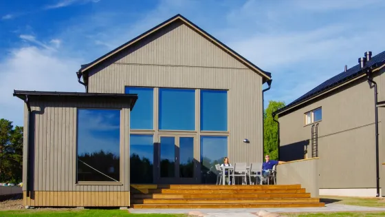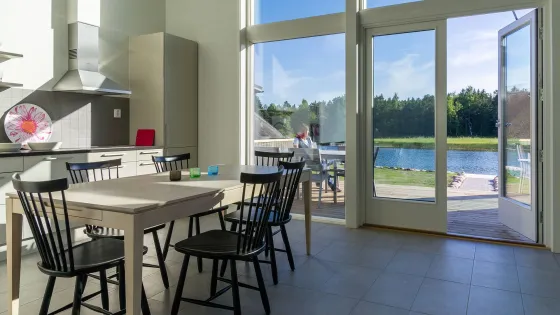 101 m². Tre dubbelrum, och tre toaletter. Bastu och badkar. Komplett kök med matplats, kyl/frys, diskmaskin, spis, brödrost, kaffe- och vattenkokare samt mikrovågsugn. Vardagsrum med TV och radio. Wi-Fi och AC finns. Stor solterrass med grillplats med kolgrill inkl. kol och tändvätska. Eget bryggområde för båt. Möjlighet att hyra motorbåt inkl. 10 l bensin till egen brygga.