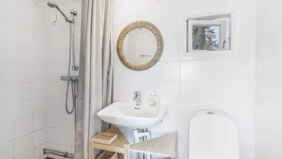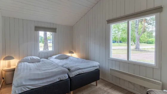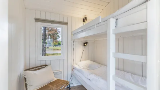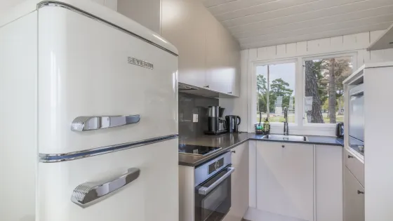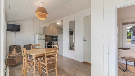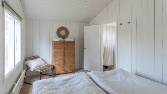 22 m². Två sovrum, ett med två enkelsängar och ett med en våningssäng. Toalett med dusch. Vardagsrum med TV. Wi-Fi finns. Komplett kök med matplats, kyl/frys, diskmaskin, spis, brödrost, kaffe- och vattenkokare samt mikrovågsugn. Fin havsutsikt, terrass med ett eget vedeldat badkar.