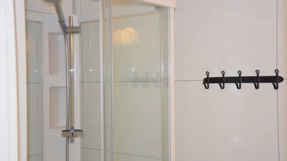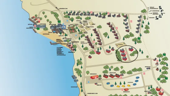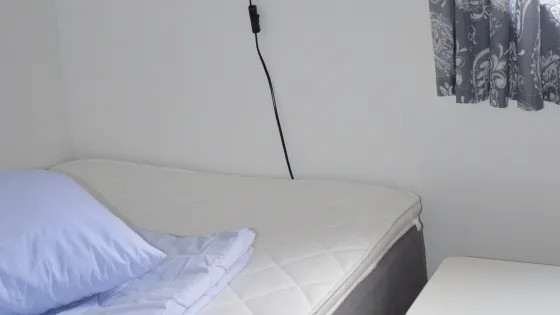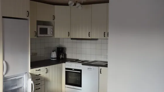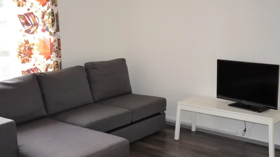 41 m². Två dubbelrum. Toalett med dusch. Vardagsrum med bäddbar soffa, TV och radio. Wi-Fi och AC finns. Komplett kök med matplats, kyl/frys, diskmaskin, spis, brödrost, kaffe- och vattenkokare samt mikrovågsugn.