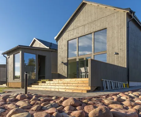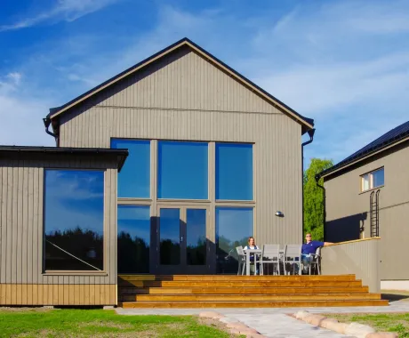 Exclusive beach suite with mirrored glass wall towards the sea of Åland and your own jacuzzi at the terrace.